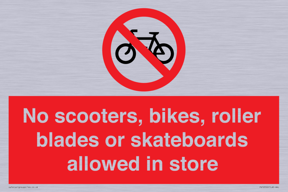 No scooters, bikes, roller blades or skateboards allowed in store Sign