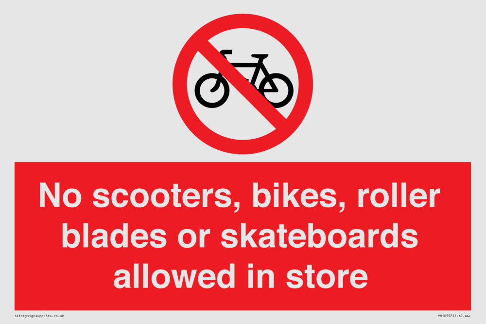 No scooters, bikes, roller blades or skateboards allowed in store