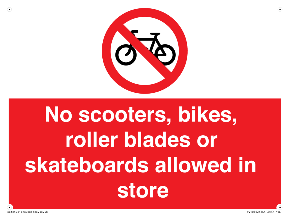 No scooters, bikes, roller blades or skateboards allowed in store