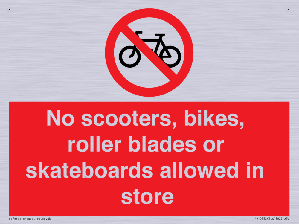 No scooters, bikes, roller blades or skateboards allowed in store