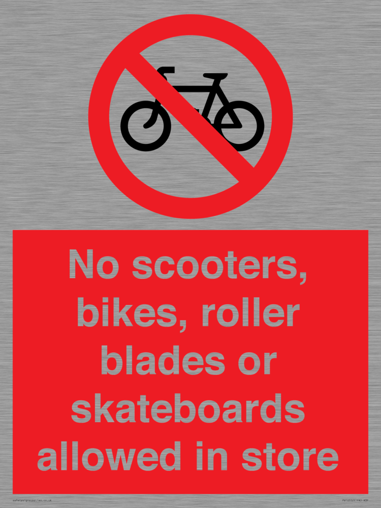 No scooters, bikes, roller blades or skateboards allowed in store Sign