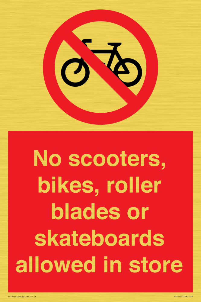No scooters, bikes, roller blades or skateboards allowed in store Sign