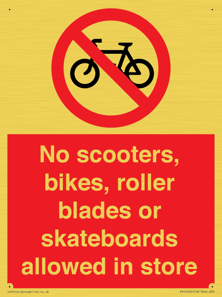 No scooters, bikes, roller blades or skateboards allowed in store