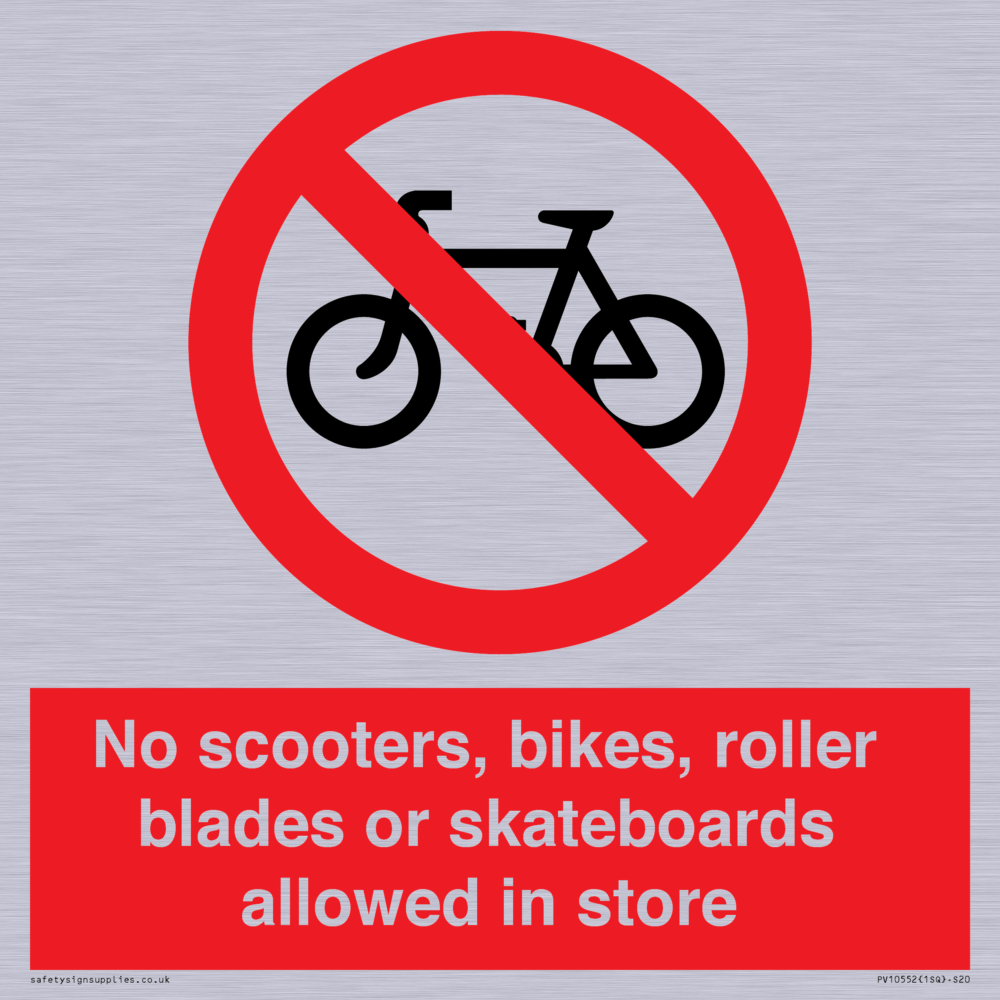 No scooters, bikes, roller blades or skateboards allowed in store Sign