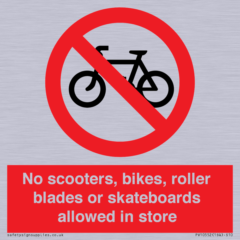 No scooters, bikes, roller blades or skateboards allowed in store Sign