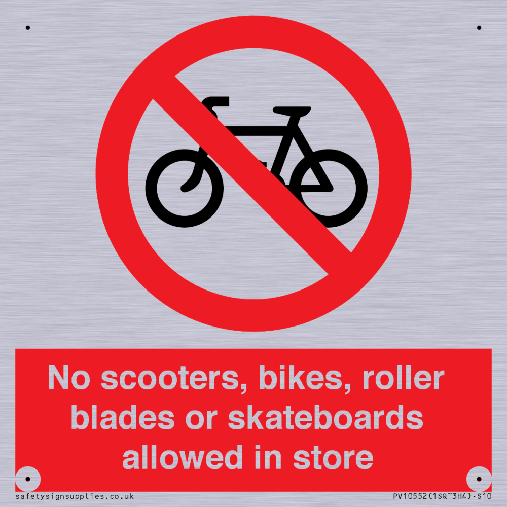 No scooters, bikes, roller blades or skateboards allowed in store