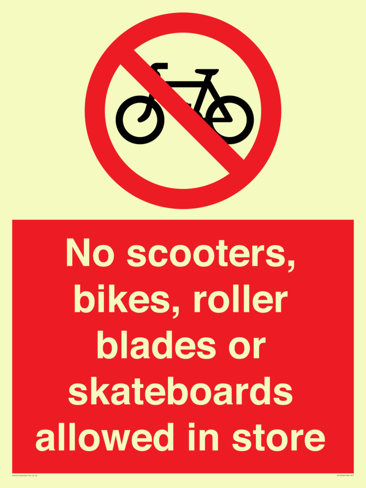 No scooters, bikes, roller blades or skateboards allowed in store
