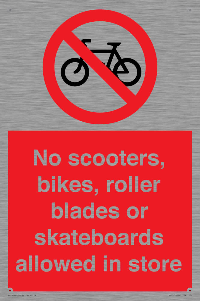 No scooters, bikes, roller blades or skateboards allowed in store Sign