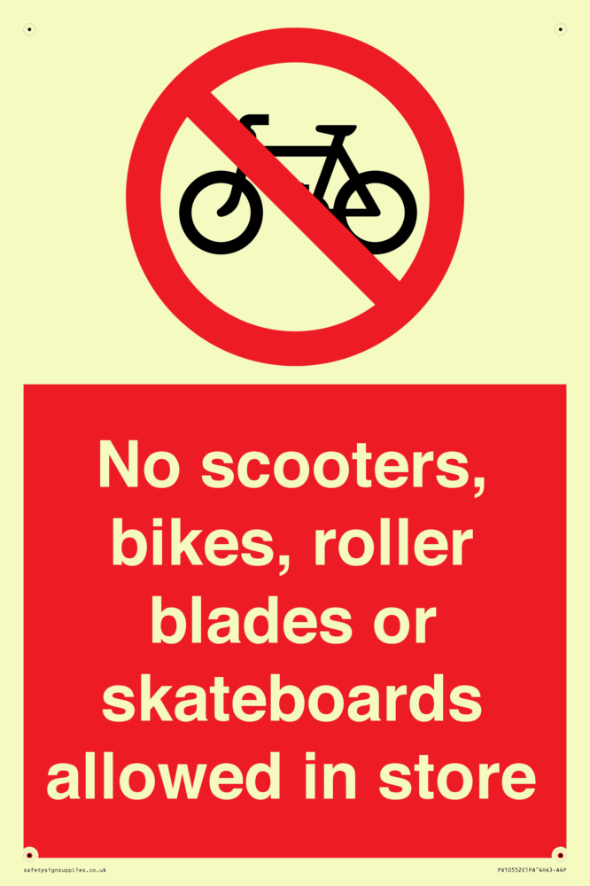 No scooters, bikes, roller blades or skateboards allowed in store