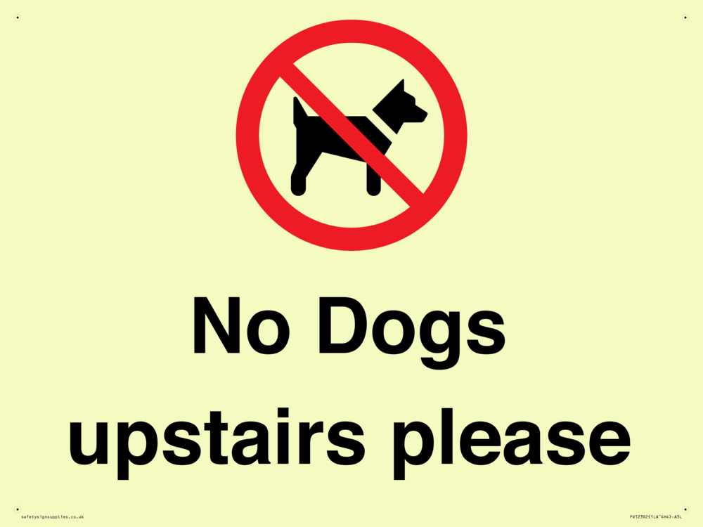 No Dogs upstairs please Sign