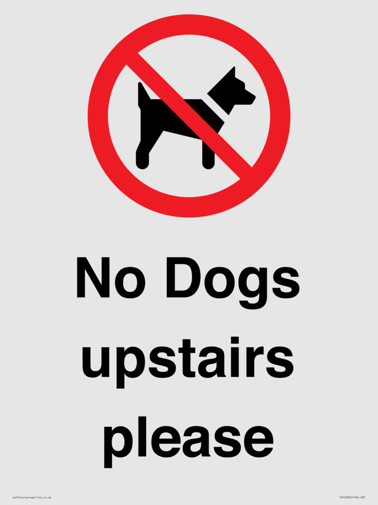 No Dogs upstairs please Sign
