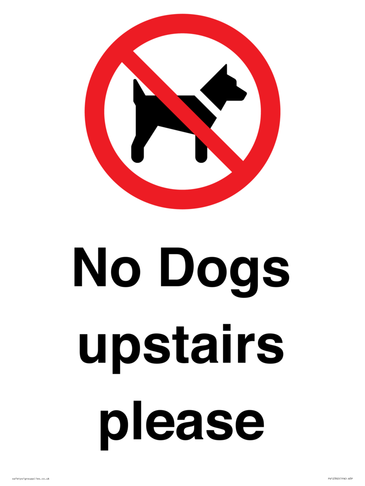 No Dogs upstairs please Sign