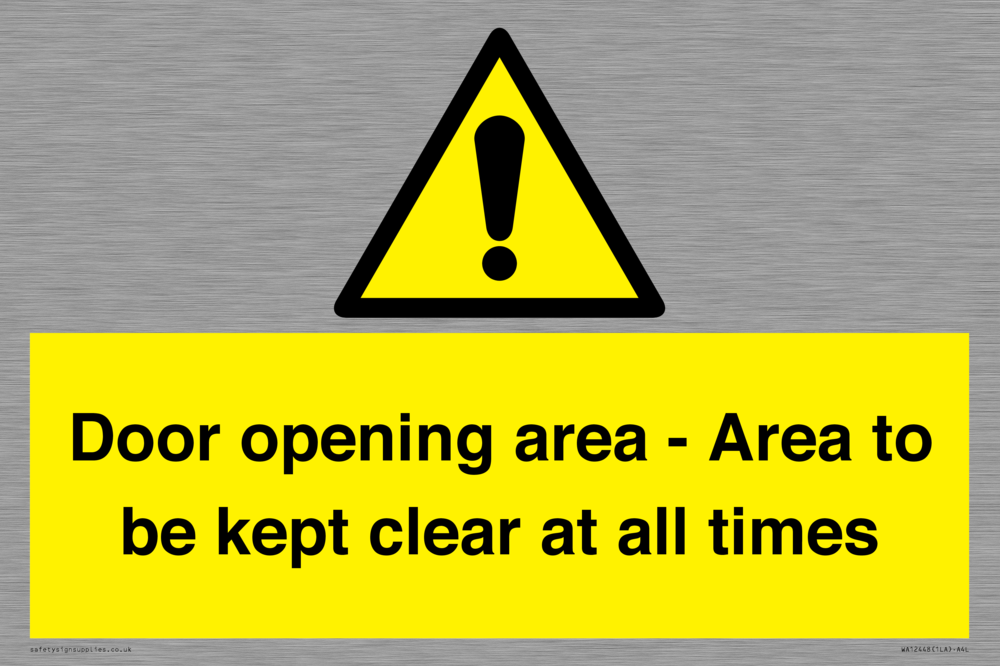 Door opening area - Area to be kept clear at all times Sign