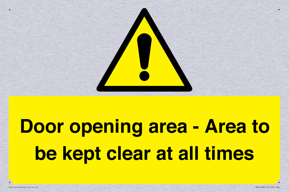Door opening area - Area to be kept clear at all times Sign