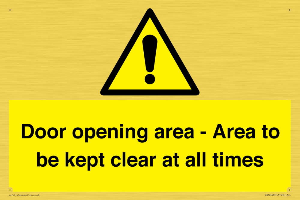 Door opening area - Area to be kept clear at all times Sign