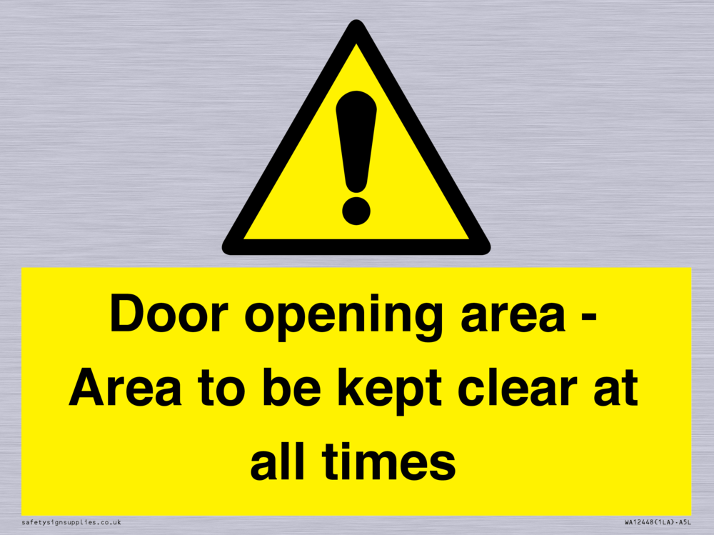 Door opening area - Area to be kept clear at all times Sign