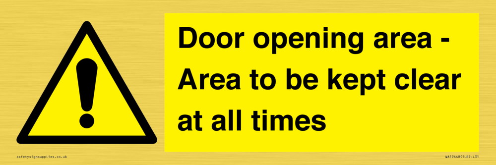 Door opening area - Area to be kept clear at all times