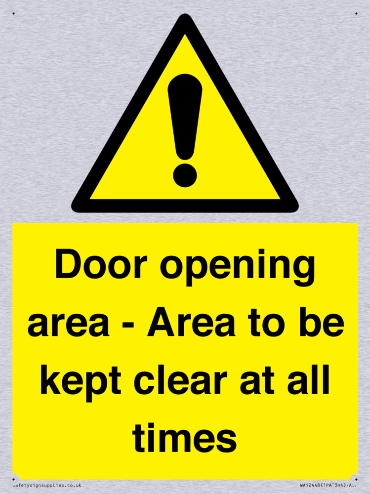Door opening area - Area to be kept clear at all times Sign