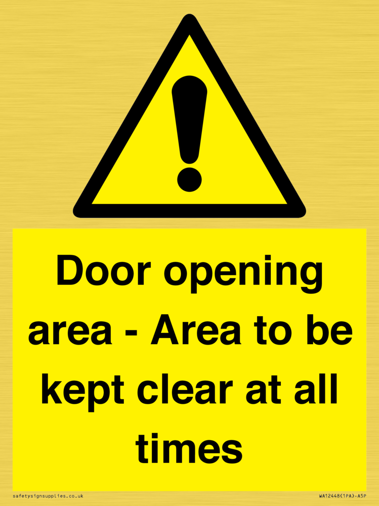 Door opening area - Area to be kept clear at all times Sign