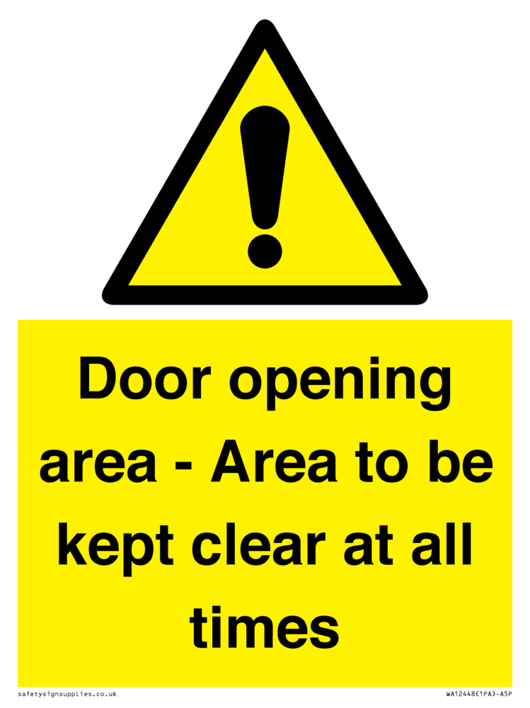 Door opening area - Area to be kept clear at all times Sign