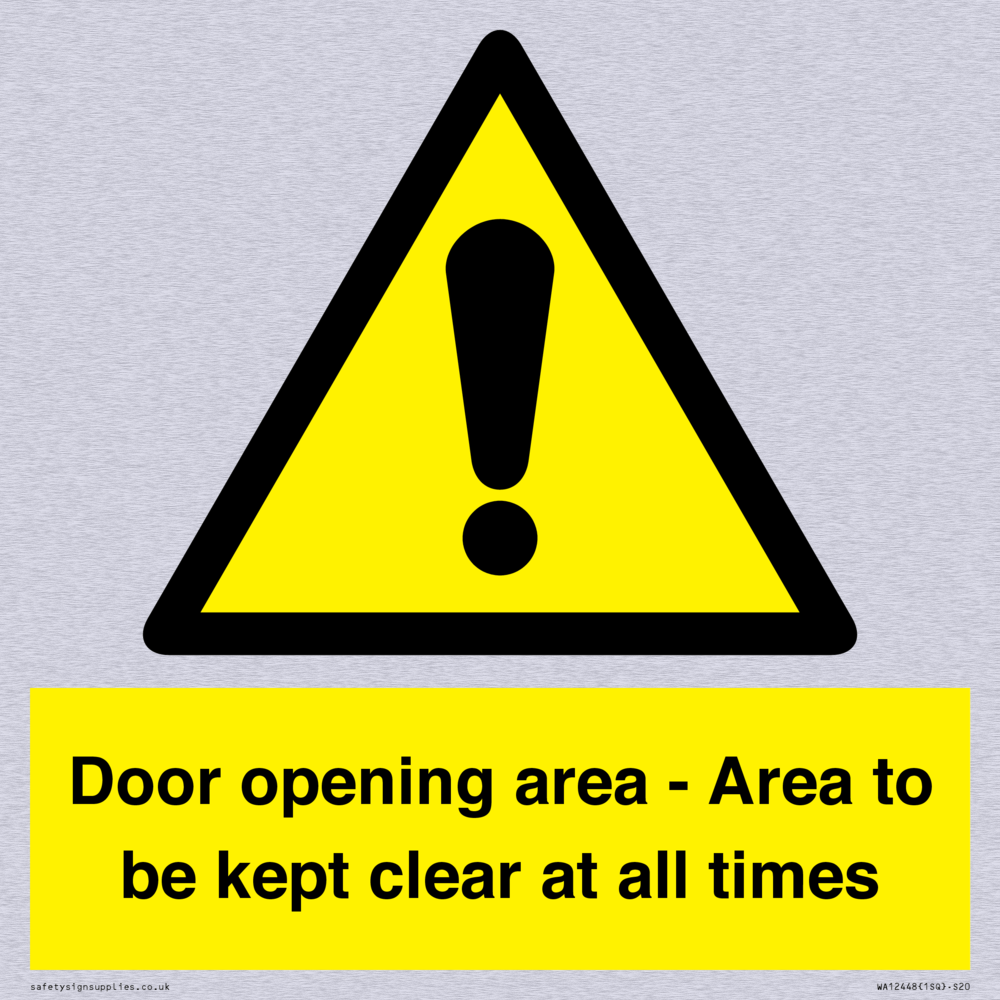 Door opening area - Area to be kept clear at all times Sign