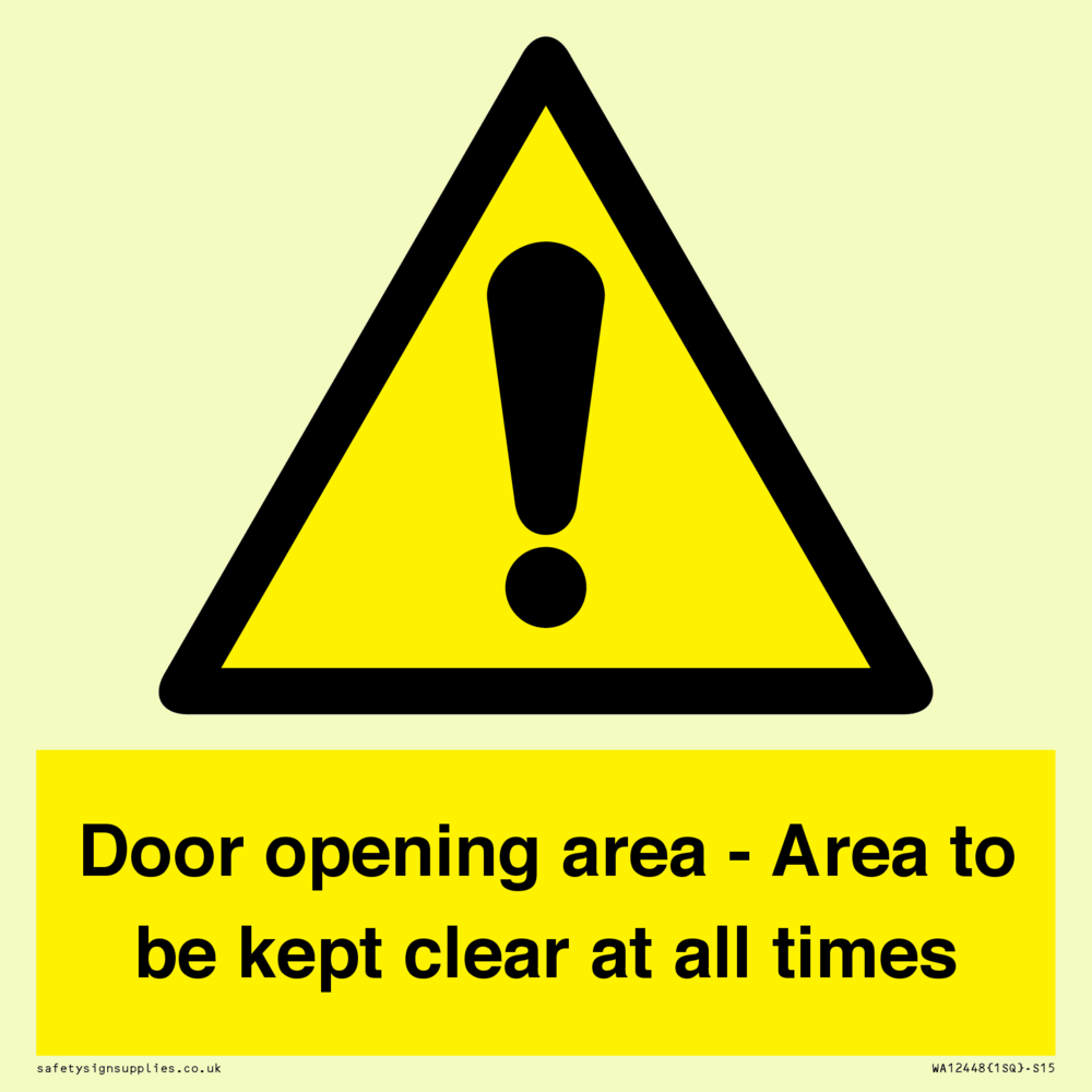 Door opening area - Area to be kept clear at all times Sign