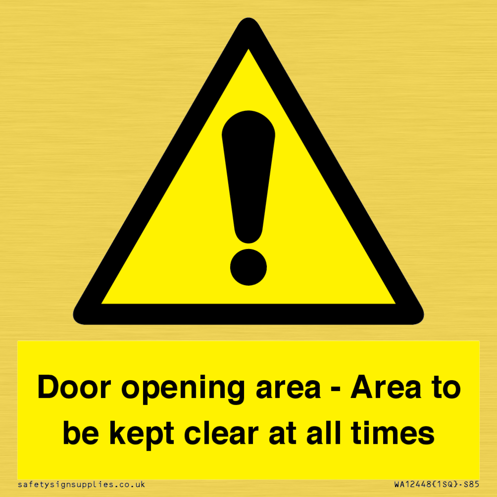 Door opening area - Area to be kept clear at all times Sign