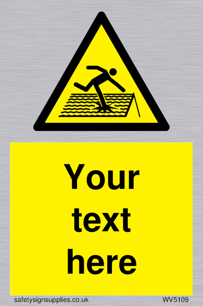 Suitable for mounting on a flat surface. Suitable for mounting on a door. Custom signs contain the text required by the customer. With your your text and a standard safety sign symbol - a bespoke sign can fit any requirement. Signs in this range are from our maximum choice range. Giving you the most choice of signs available in the UK.
