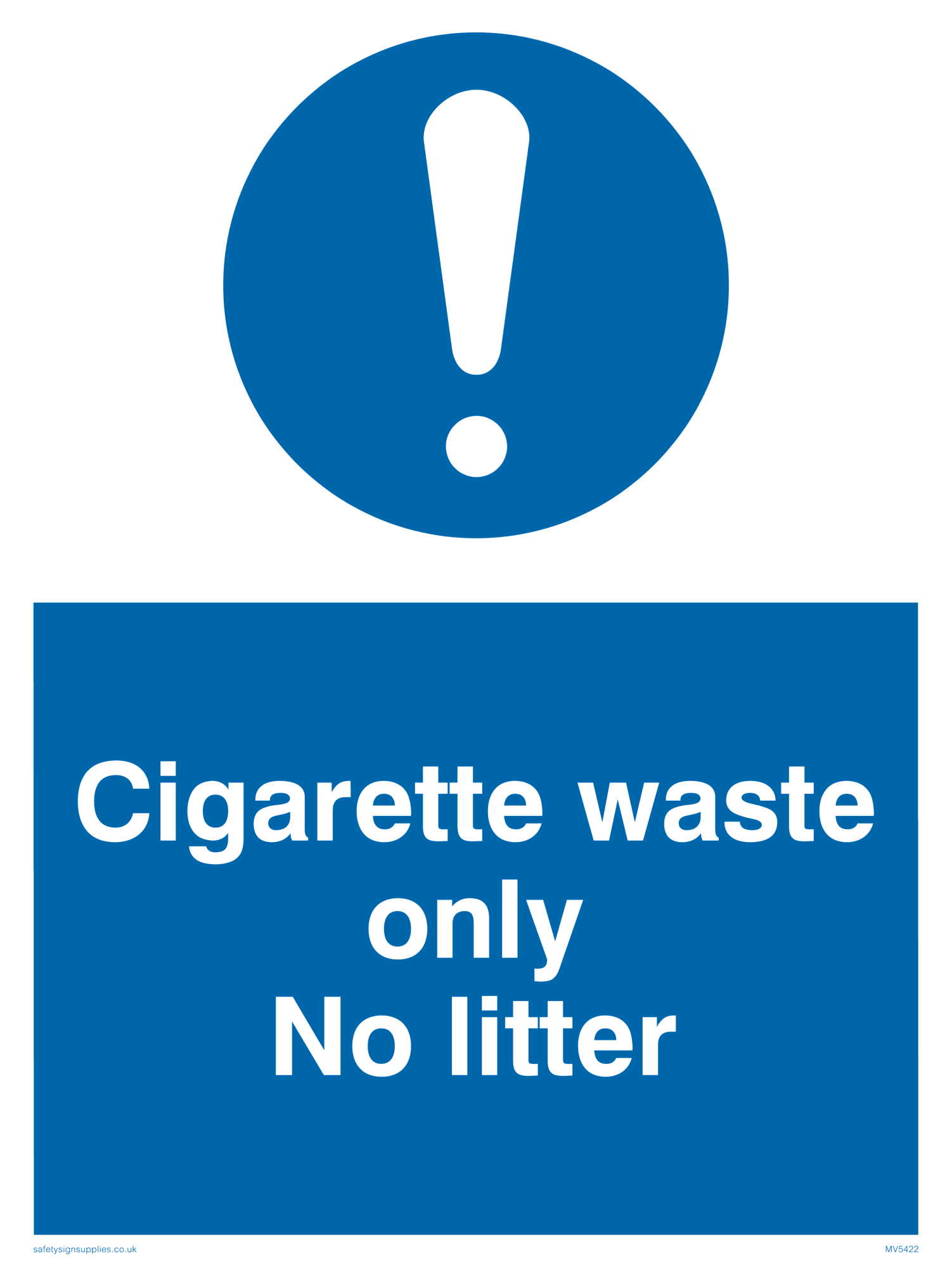 This sign contains a general Mandatory Exclamation Symbol - exclamation mark in white on blue circle background.