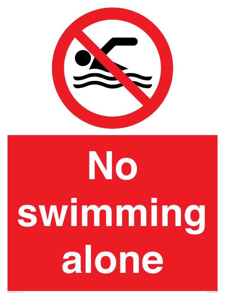 No swimming alone, prohibition sign