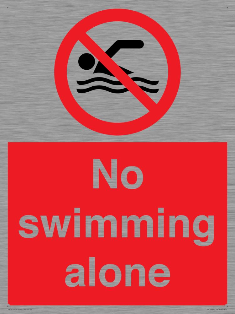 No swimming alone, prohibition sign