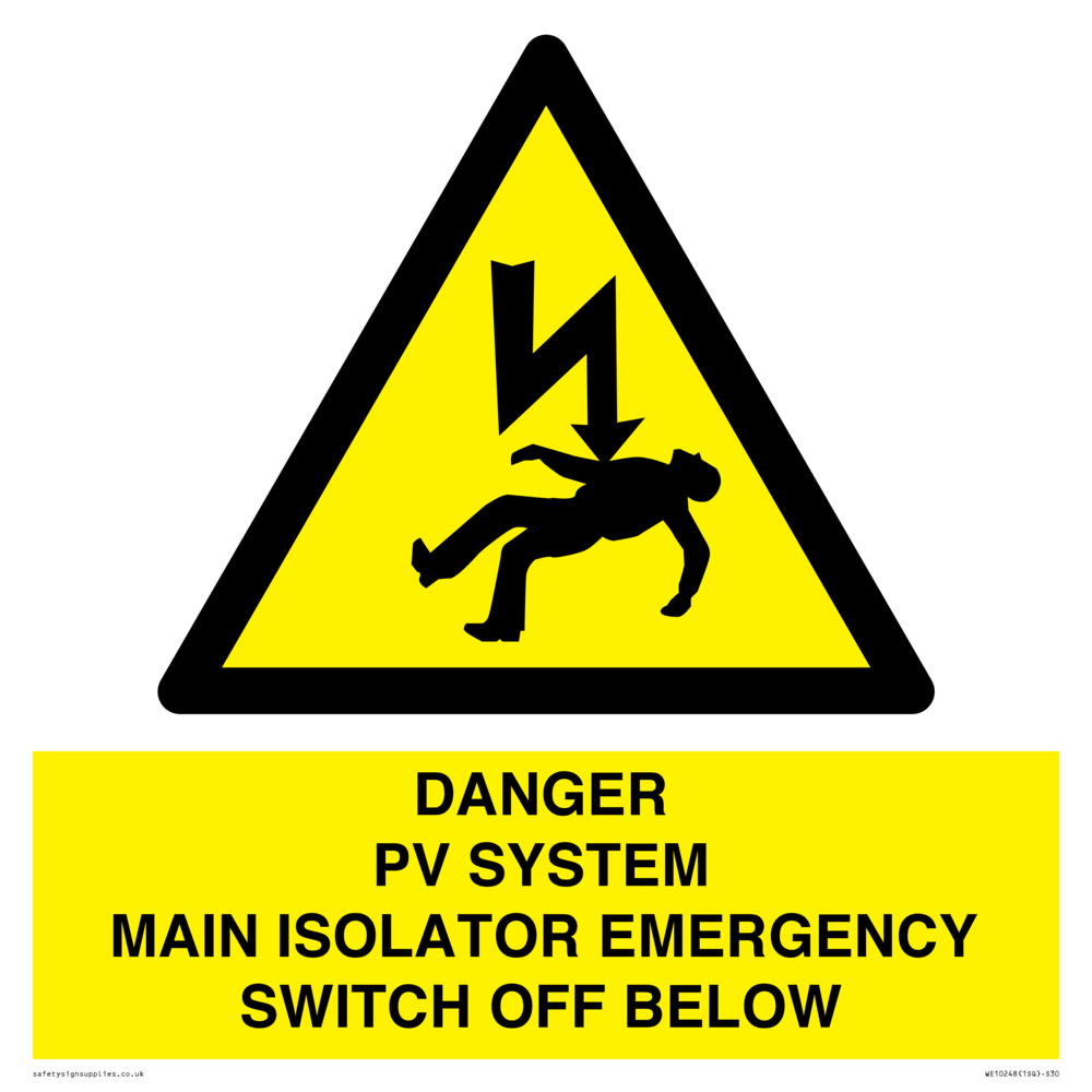 DANGER PV SYSTEM MAIN ISOLATOR EMERGENCY SWITCH OFF BELOW