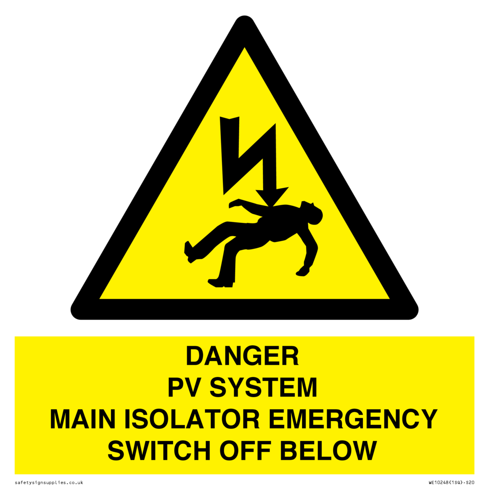 DANGER PV SYSTEM MAIN ISOLATOR EMERGENCY SWITCH OFF BELOW
