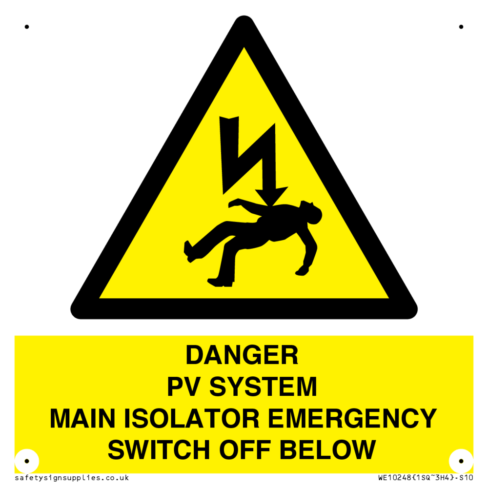 DANGER PV SYSTEM MAIN ISOLATOR EMERGENCY SWITCH OFF BELOW