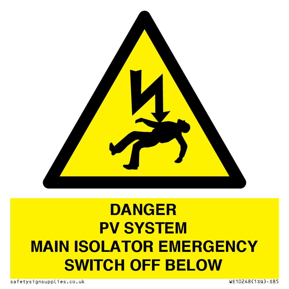 DANGER PV SYSTEM MAIN ISOLATOR EMERGENCY SWITCH OFF BELOW