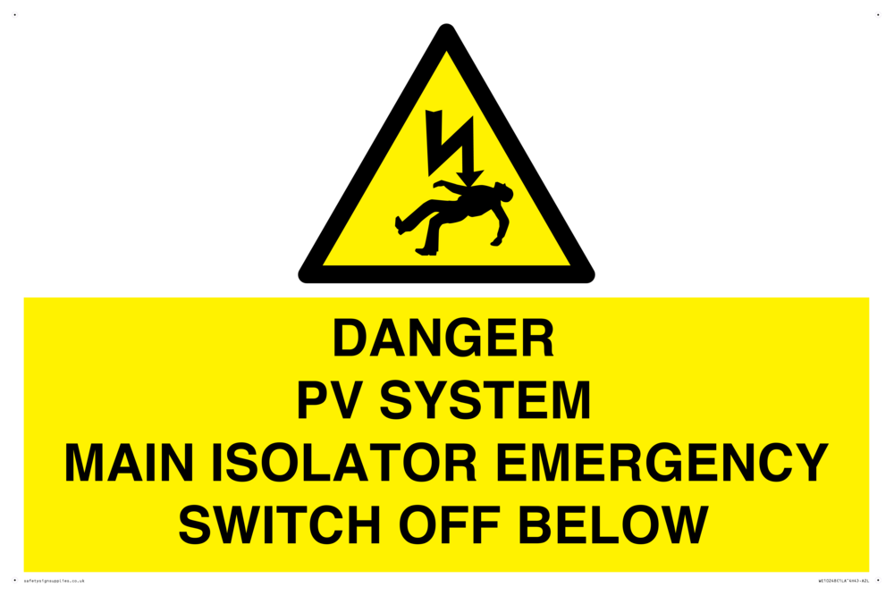 DANGER PV SYSTEM MAIN ISOLATOR EMERGENCY SWITCH OFF BELOW