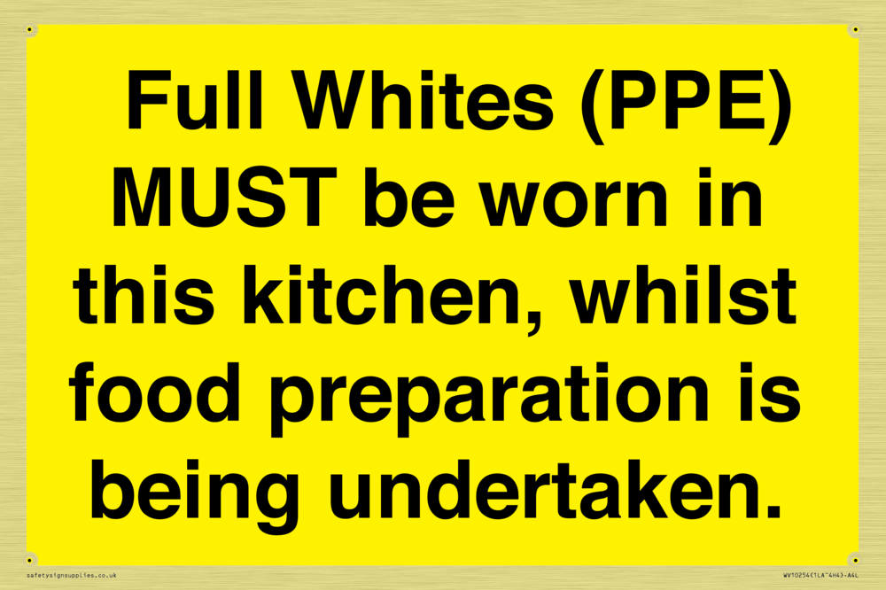 Full Whites (PPE) MUST be worn in this kitchen, whilst food preparation is being undertaken.