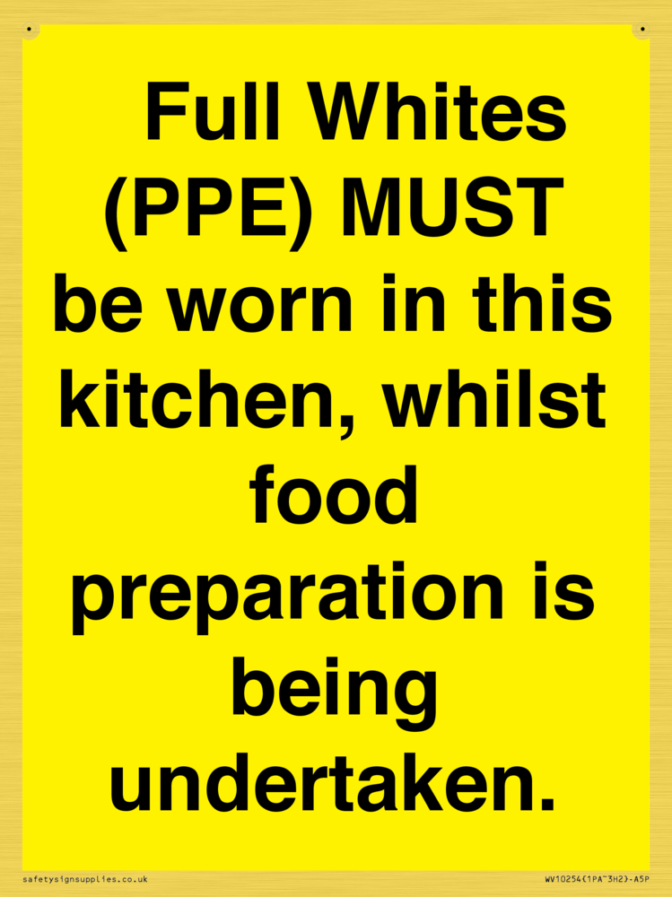 Full Whites (PPE) MUST be worn in this kitchen, whilst food preparation is being undertaken.