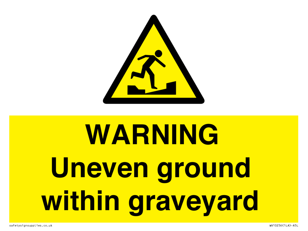 WARNING Uneven ground within graveyard Sign
