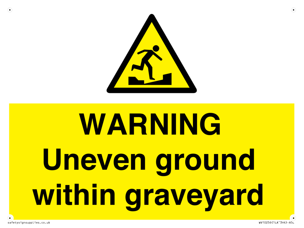 WARNING Uneven ground within graveyard Sign