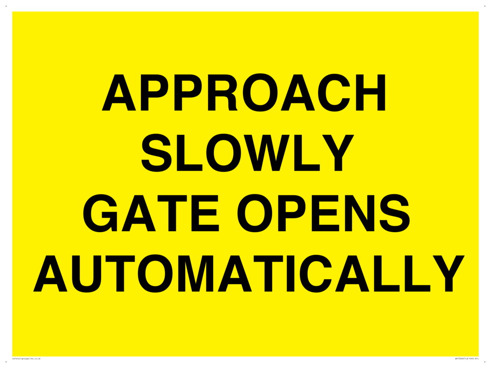 APPROACH SLOWLY GATE OPENS AUTOMATICALLY Sign
