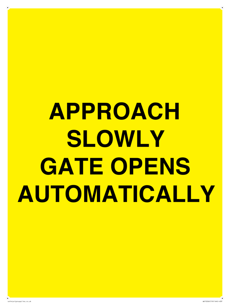 APPROACH SLOWLY GATE OPENS AUTOMATICALLY Sign