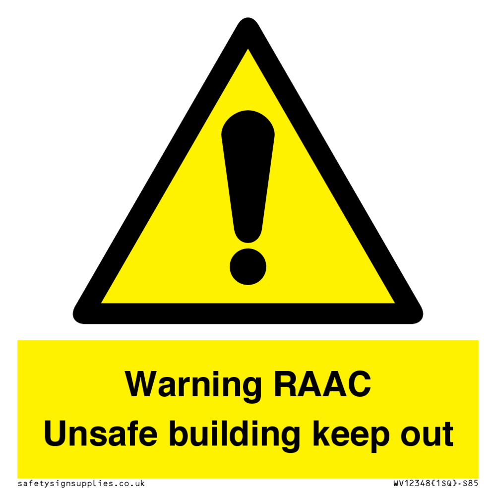 Warning RAAC unsafe building keep out, warning sign
