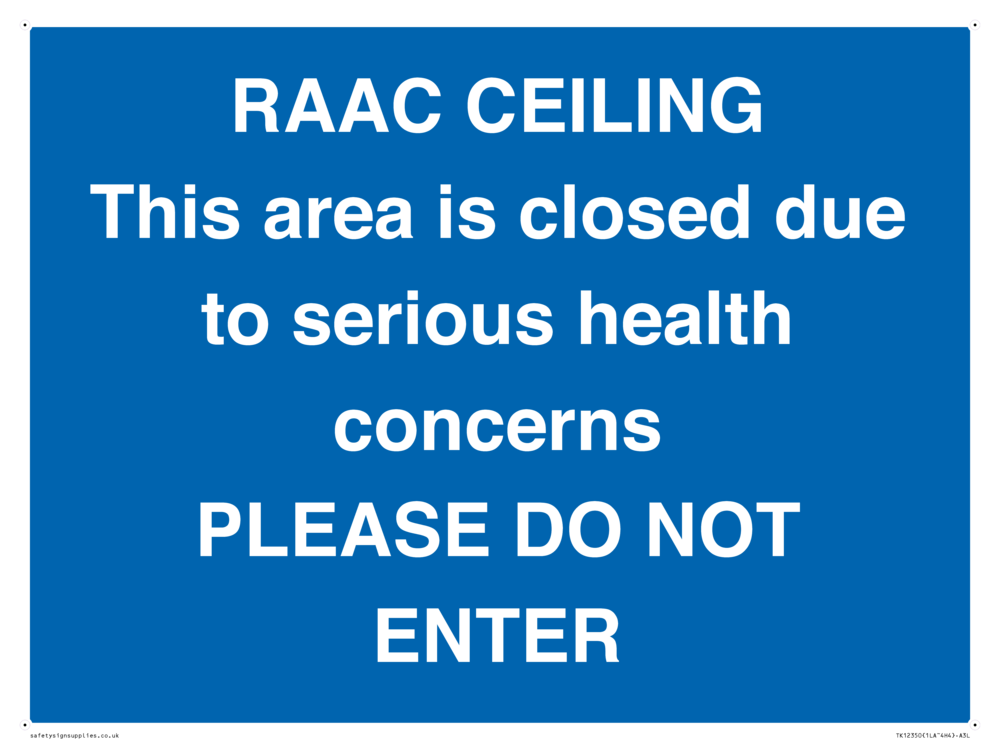 RAAC CEILING This area is closed due to serious health concerns PLEASE DO NOT ENTER Sign