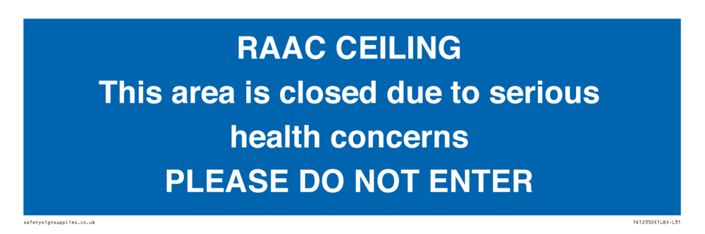 RAAC CEILING This area is closed due to serious health concerns PLEASE DO NOT ENTER