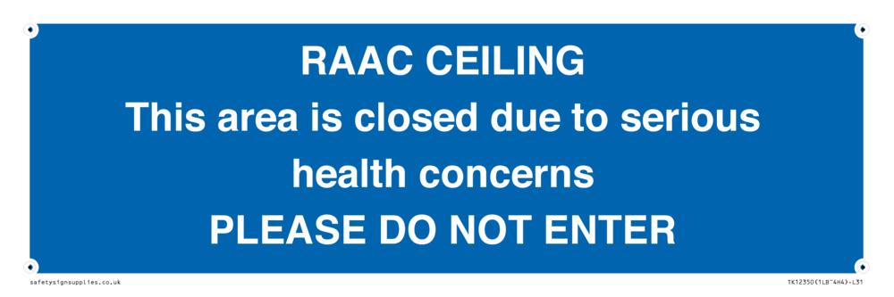 RAAC CEILING This area is closed due to serious health concerns PLEASE DO NOT ENTER