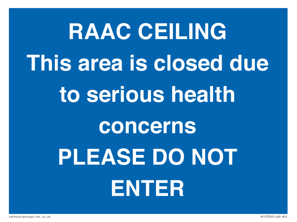 RAAC CEILING This area is closed due to serious health concerns PLEASE DO NOT ENTER