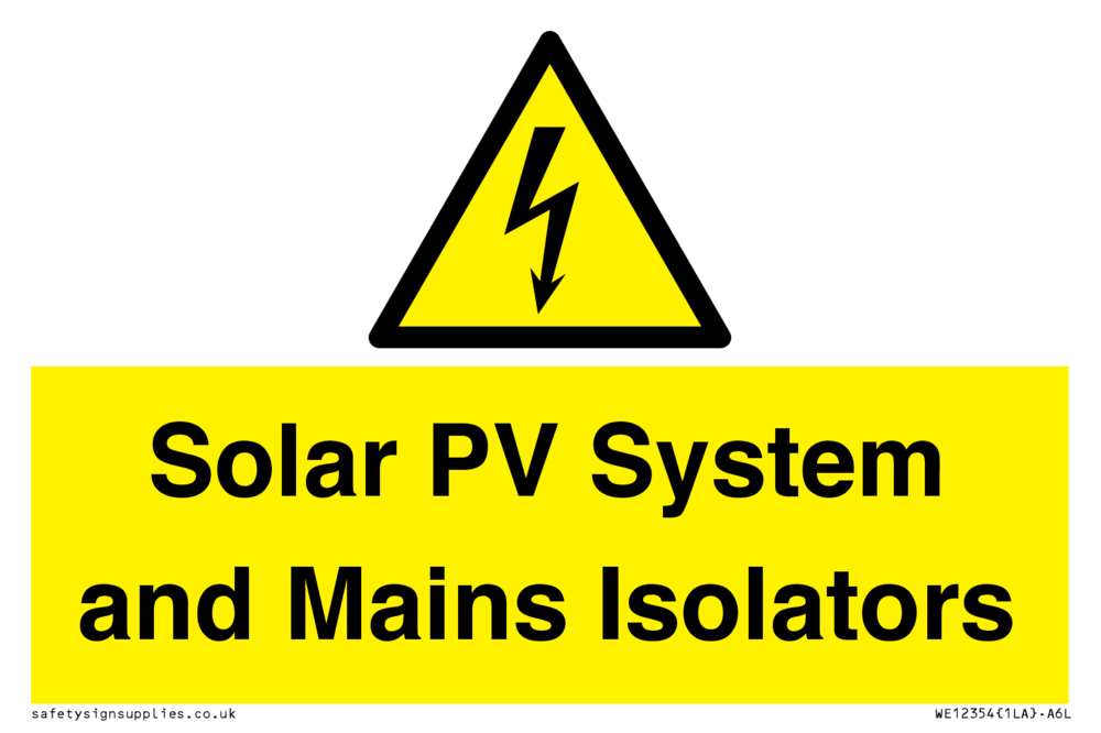 Solar PV System and Mains Isolators Sign