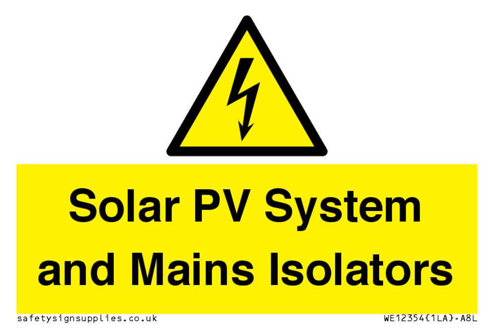 Solar PV System and Mains Isolators Sign