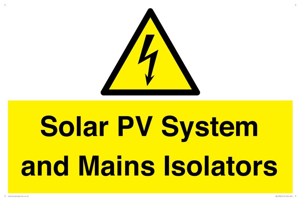 Solar PV System and Mains Isolators Sign